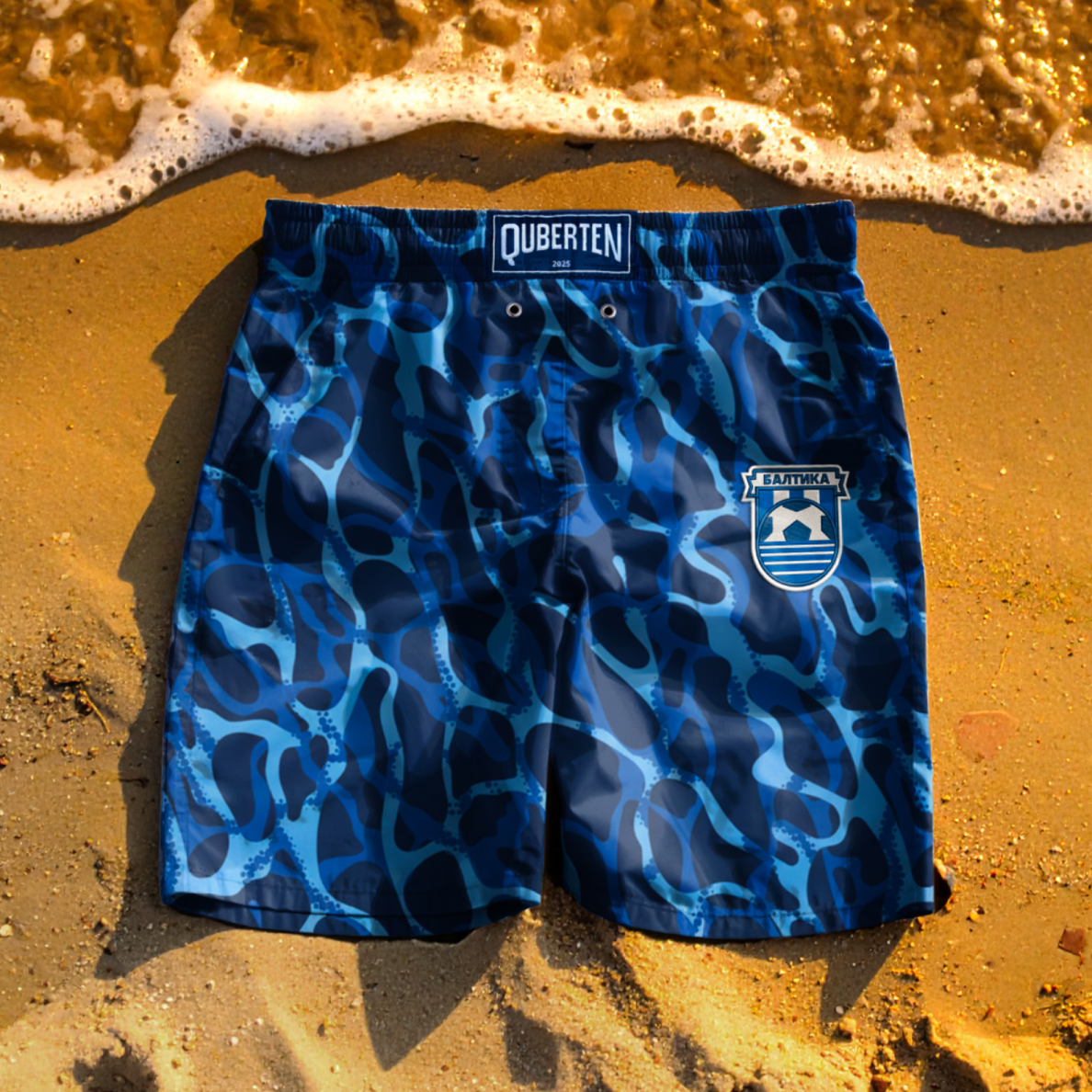 Пляжи побережья Балтийского моря — важная достопримечательность Калининградской области. Они отражены в каустическом паттерне с игрой лучей солнца и теней на поверхности воды.