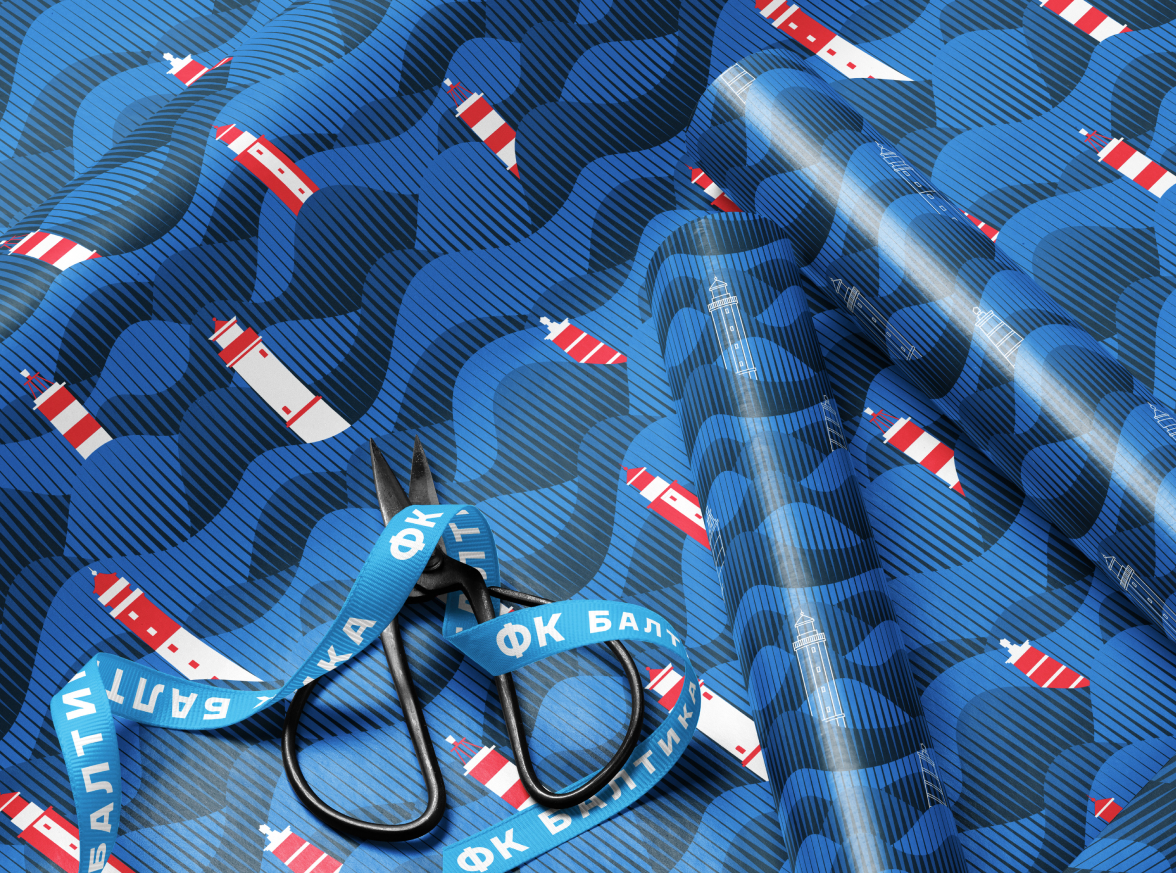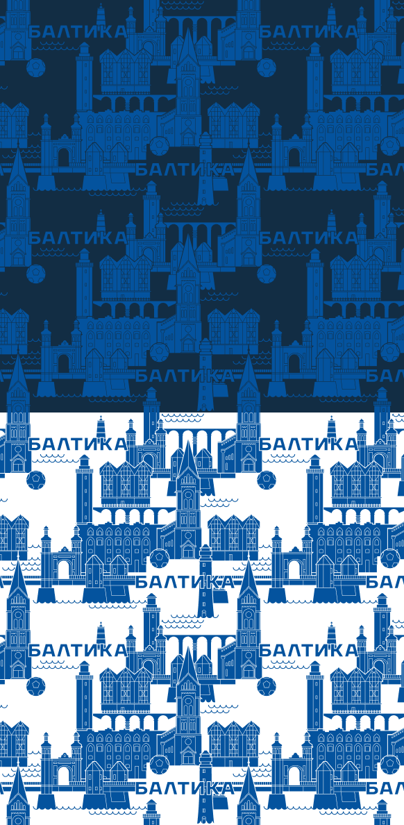 «Балтика» — это море и волны, за них отвечают глубокий морской синий, прохладный яркий синий и белый. Другая твердая ассоциация с Калининградом представлена бурым янтарным и теплым песочным цветами. Комбинации цветов добавляют вариативность в фирменные паттерны.