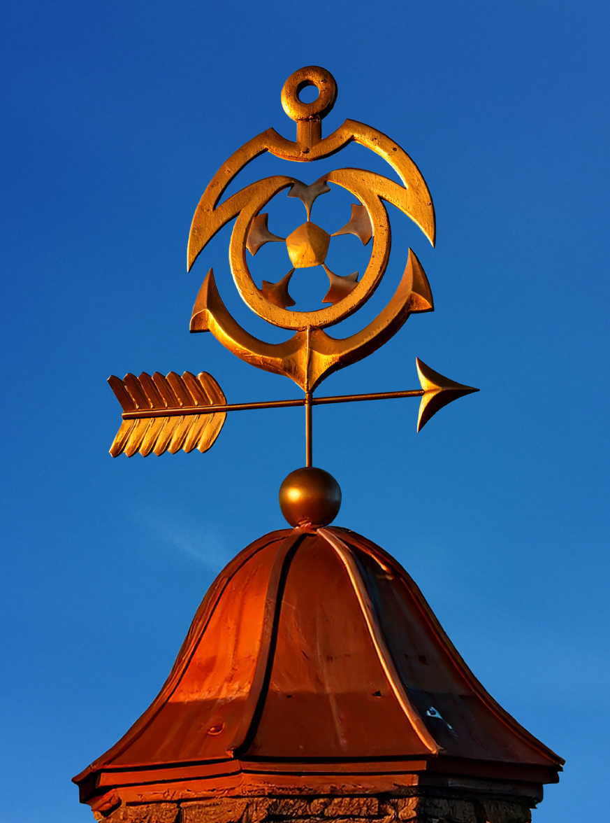 Мяч подкачан до правильной круглой формы и строго вписан в геометрию щита. Центральная панель мяча оптимистично приподнята вверх и расположена над водой.